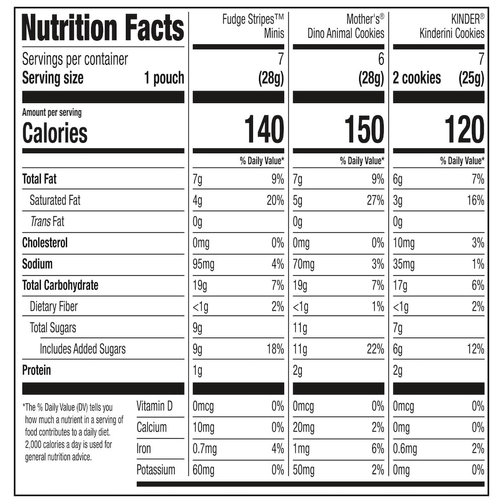 Indulge in a delightful assortment of cookie favorites with the Treat Time Treasures Variety Pack. This box includes 20 single-serve packs of three beloved cookie brands: Keebler Fudge Stripes Mini Original Cookies, Mother's Chocolatey Dynamite Dinosaurs Cookies, and Kinder Kinderini Cookies. Each pack offers a unique flavor and texture, from the playful, frosted dinosaur-shaped animal cookies to the magically baked mini shortbread treats coated with Keebler fudge, and the delicious crunchy fun of Kinder Kinderini.